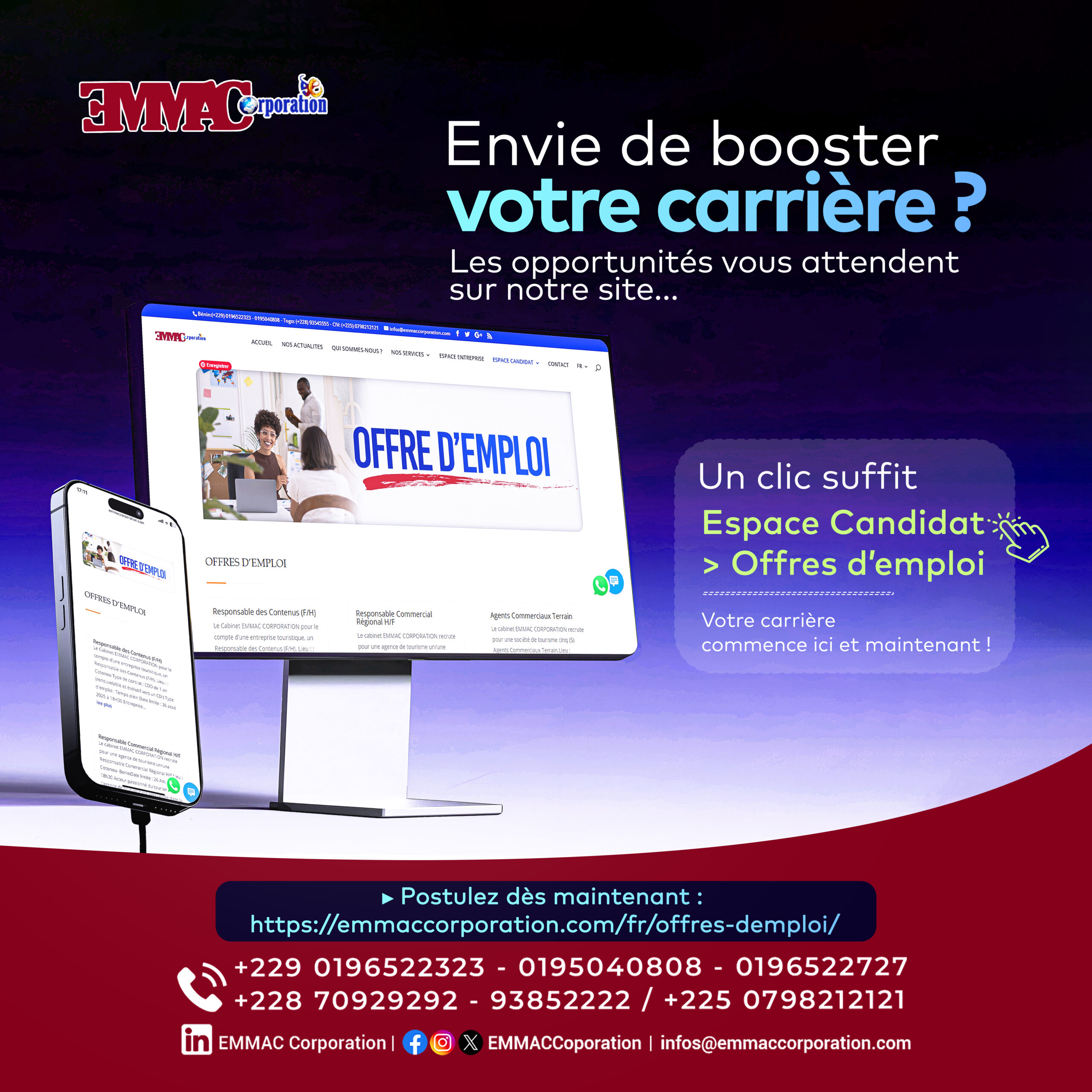 Rejoignez-nous dès aujourd’hui et découvrez comment Emmac Corporation peut transformer vos ambitions en succès.